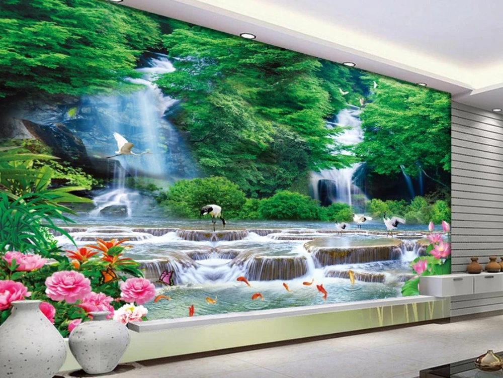 Şelale ve doğa manzarası 3d 3 boyutlu duvar kağıdı.